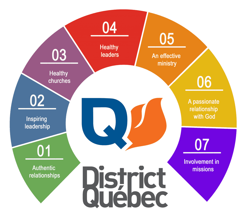 The District of Quebec is a fellowship of over 100 churches holding services in French, English, and other languages throughout the Province of Quebec. We exist to facilitate the proclamation of the Gospel and to provide support, vision and training to leaders and our churches. Because of this relational approach, we are committed to the following values: