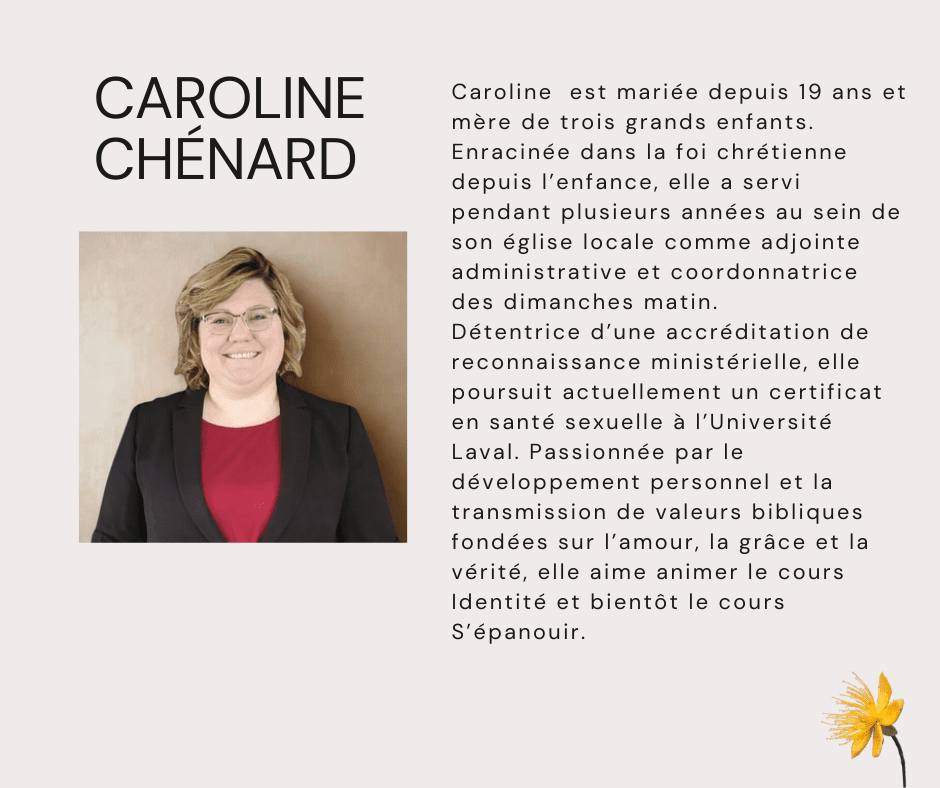 Bien qu’originaire de Saint-Jérôme, Québec, c’est à Toronto que Roxanne découvre son appel au ministère pastoral, lors de ses études au Master’s College & Seminary.